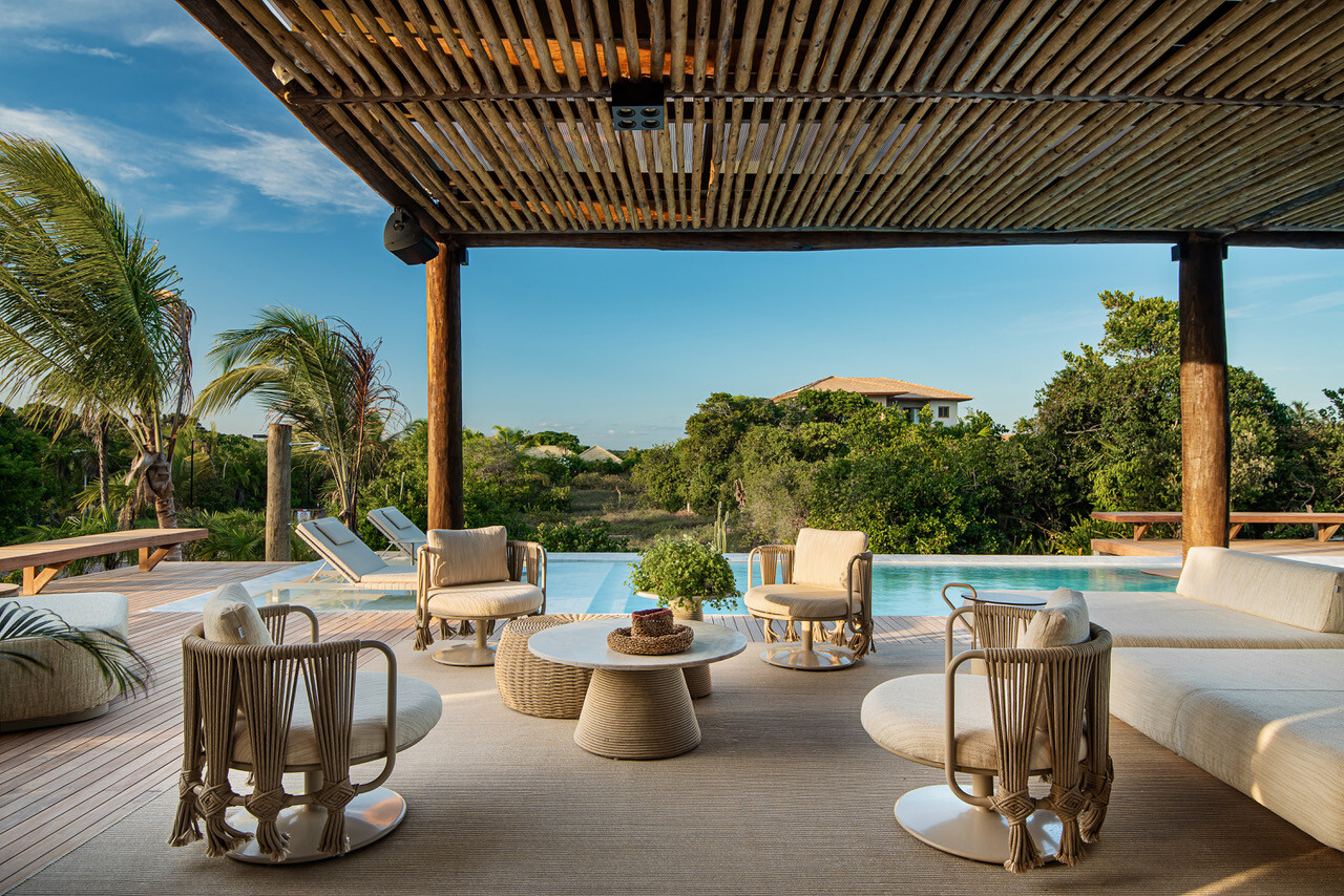 Este projeto, localizado no litoral baiano, surgiu de um desafio singular: um terreno de esquina no final da rua, voltado para o oeste e exposto a ventos fortes. Gizado para uma família vibrante, apaixonada pela praia e rodeada de amigos, era essencial que a residência fosse um reflexo fiel da sua alegria de viver e se integrasse harmoniosamente com a envolvente natural.