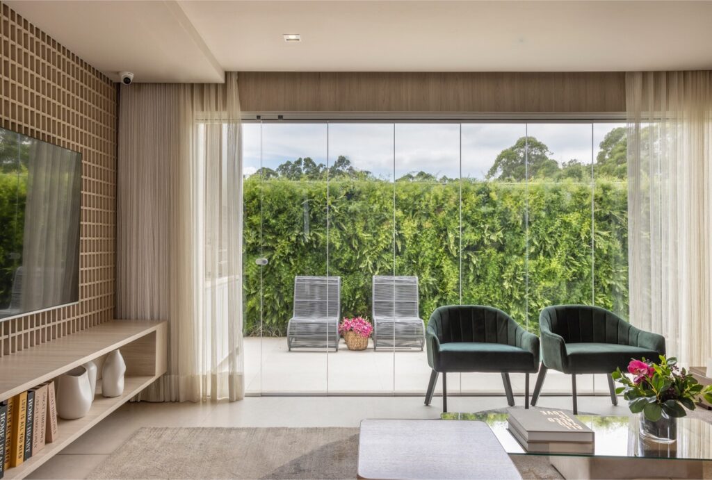Materiais naturais e integração visual definem a atmosfera da Casa Muxarabi, uma residência que privilegia a convivência e o bem-estar.