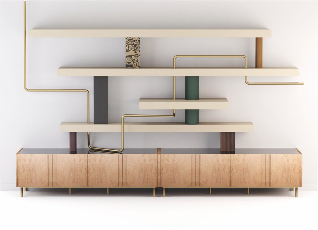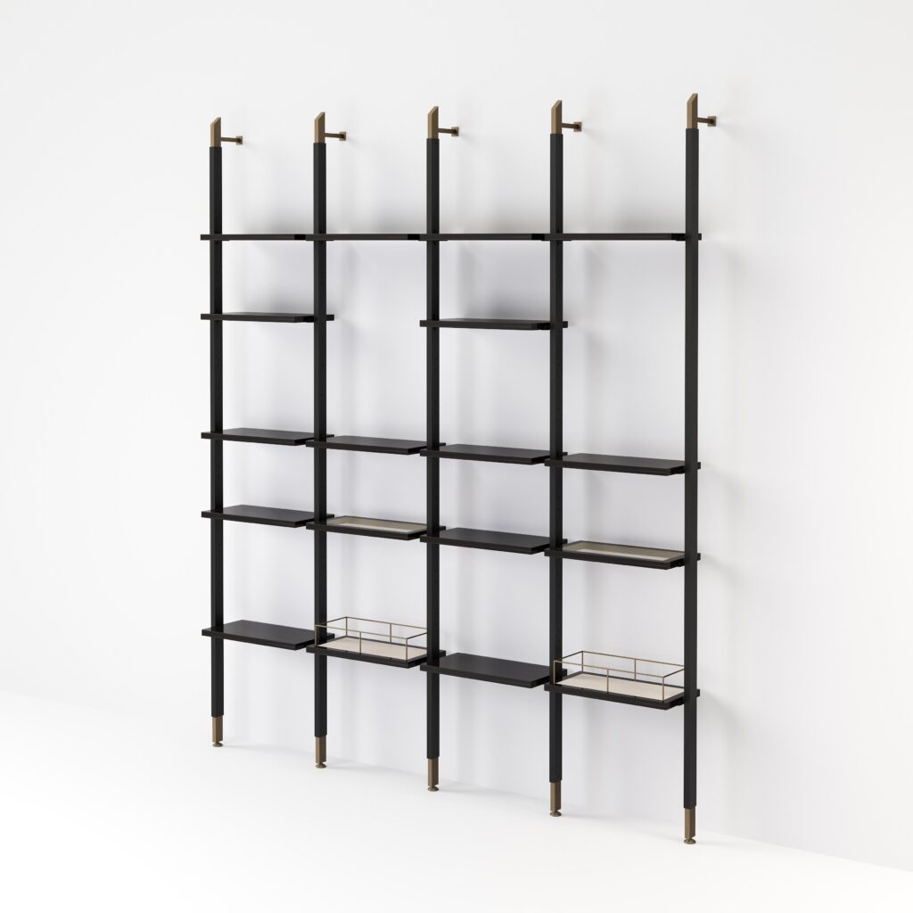 Muitas vezes assumindo o protagonismo do espaço onde se inserem, são definitivamente peças statement. Aqui a arrumação passa para segundo plano porque o que interessa é o design a curadoria e a narrativa que queremos contar. Podem ser estantes-galeria, nichos e caixas ou prateleiras esculturais.