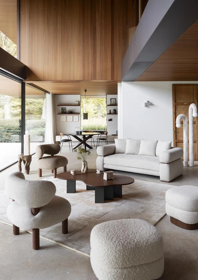 Resultado de uma relação de confiança construída ao longo do tempo, a colaboração entre o Studioparisien e a Maison Pierre Frey assentou num processo de criação por medida, desenvolvido em estreita ligação com os artesãos da oficina de Villers-Cotterêts. Este diálogo contínuo permitiu refinar linhas e ajustar proporções, garantindo o equilíbrio entre elevados padrões de conforto e uma estética depurada.