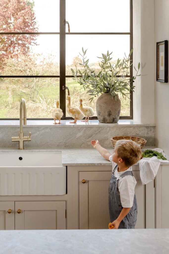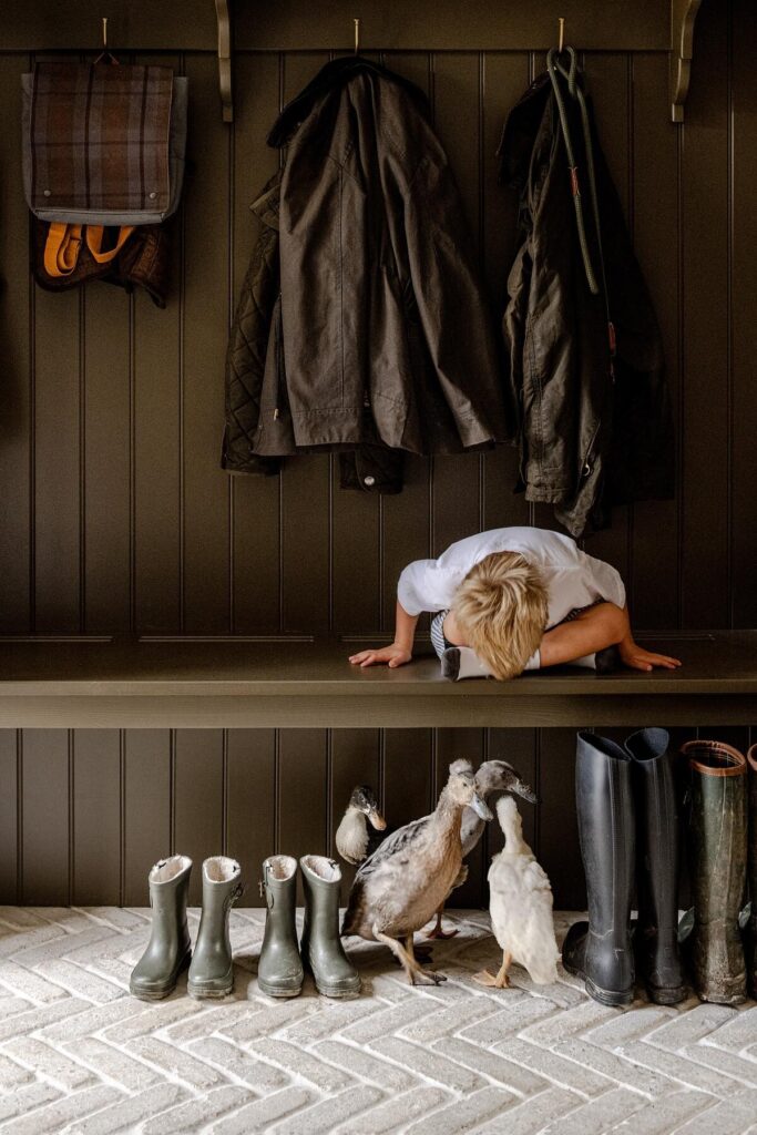 As fotografias captadas por French + Tye revelam uma casa vivida — onde crianças, animais e momentos espontâneos coexistem com a beleza dos espaços — compondo um retrato honesto e contemporâneo da vida familiar no campo.