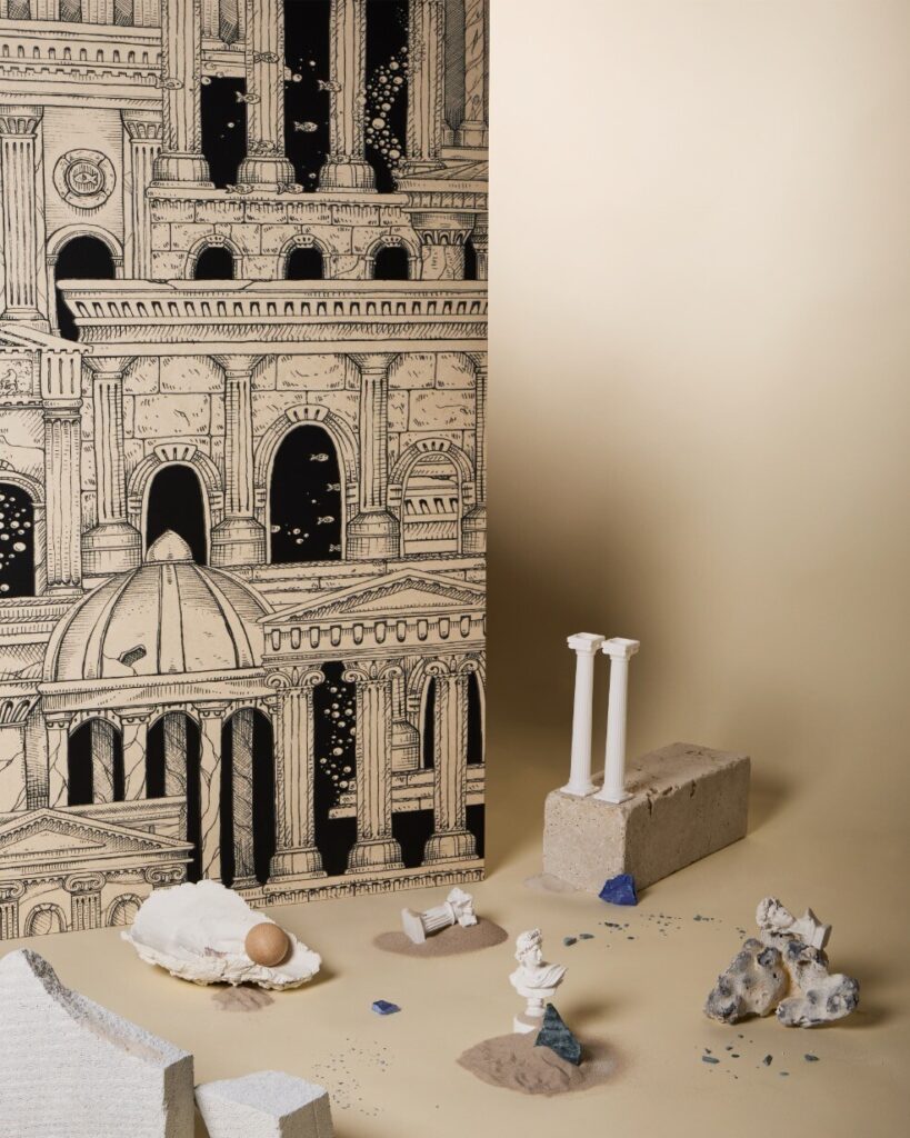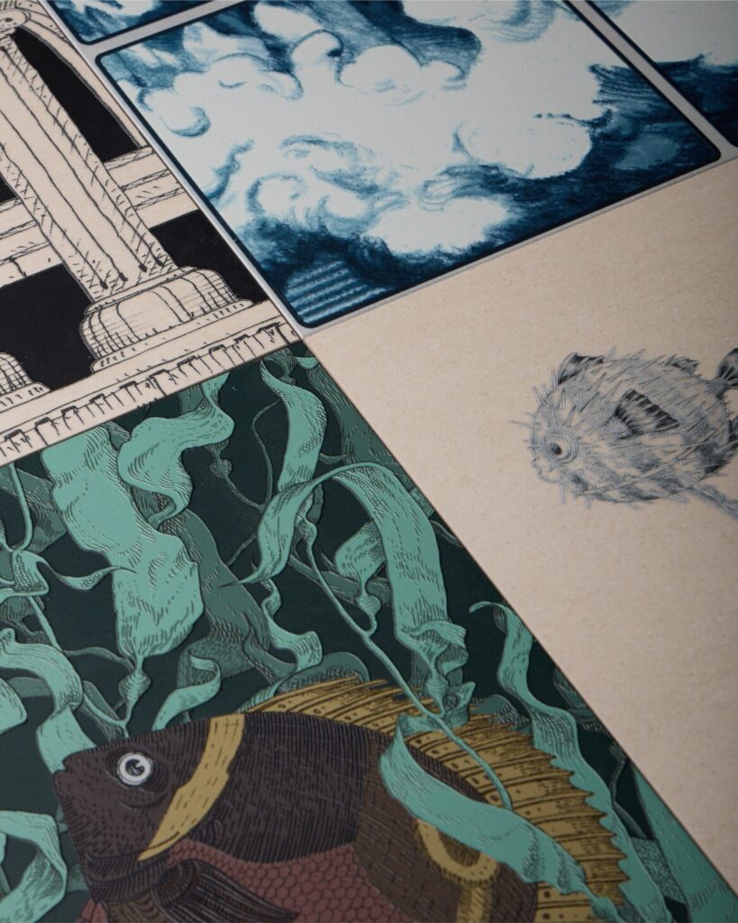 Aquatic Creatures vai buscar o seu nome ao conceito que Riccardo Capuzzo tem explorado e refinado ao longo da sua carreira: uma homenagem ao fascínio do mar, à descoberta dos seus habitantes e à experiência evocativa do mergulho. Cada desenho conta uma história subaquática, onde animais aquáticos são retratados através de uma lente fantasiosa e excêntrica — uma visão exagerada de um mundo marinho encantador, criando um diálogo visual que funde natureza, sonho e design contemporâneo.