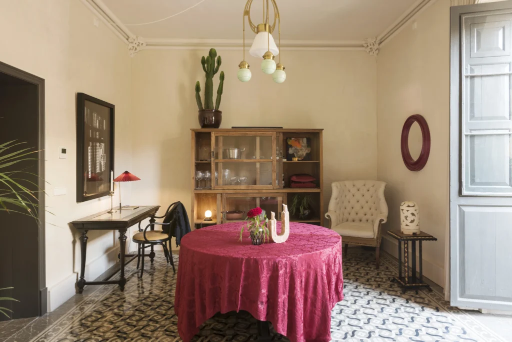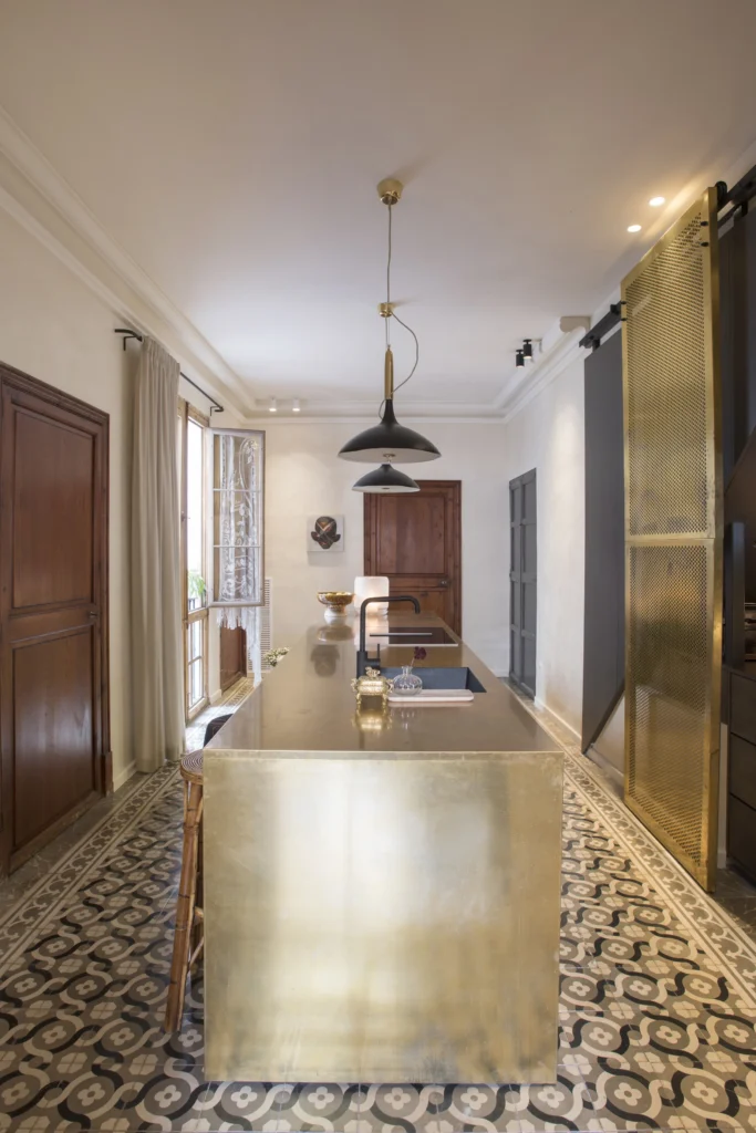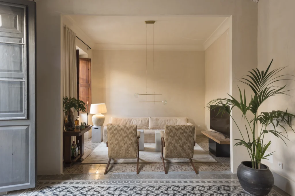 Pé-direito alto, mosaicos hidráulicos, molduras em estuque e grandes vãos são os elementos-chave preservados e valorizados nesta renovação de um edifício centenário no centro histórico de Palma.