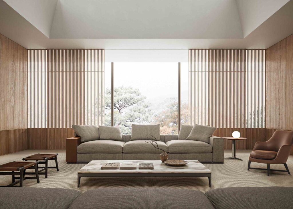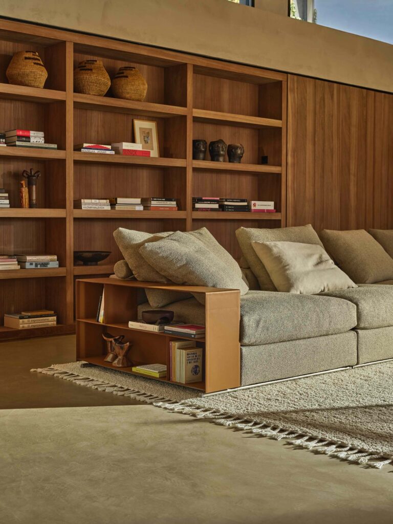 À medida que os estilos de vida se tornaram multifuncionais, o Groundpiece respondeu naturalmente. Já não se trata apenas de um lugar para descansar: nele lê-se, trabalha-se, vê-se televisão, convive-se, e até se janta. Esta transformação levou à reinvenção de um dos seus elementos mais emblemáticos: o braço.