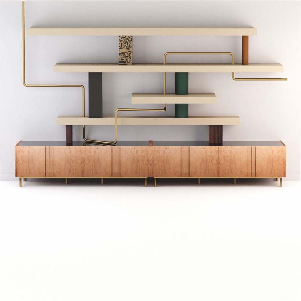A estante como objeto de design, com formas orgânicas ou geométricas, muitas vezes assumindo-se como peça statement na decoração.