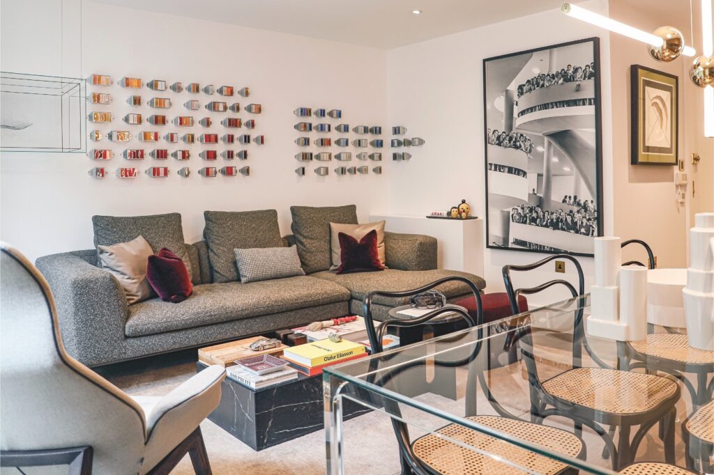 Saiu da casa dos pais aos 25 anos, quando ainda trabalhava na área de marketing, e mudou-se para Londres para expandir a empresa. Depois de um ano a viver em East London, numa casa partilhada, decidiu procurar um lugar só para si, em Chelsea, que hoje chama de “seu bairro”. Todo o trabalho de pesquisa feito nessa época — das várias consultas aos estúdios de design de interiores às conversas com um amigo arquiteto —, resultou num novo caminho: ser ele próprio a executar o projeto de interiores.