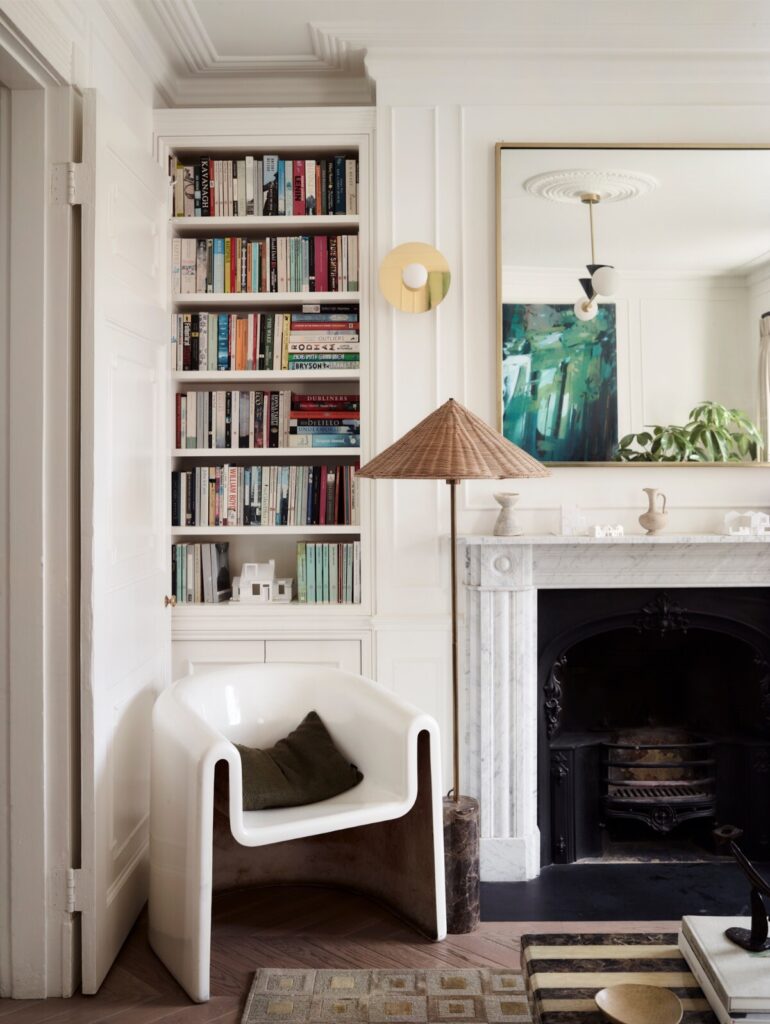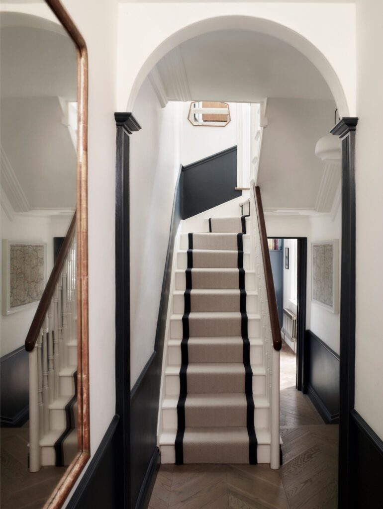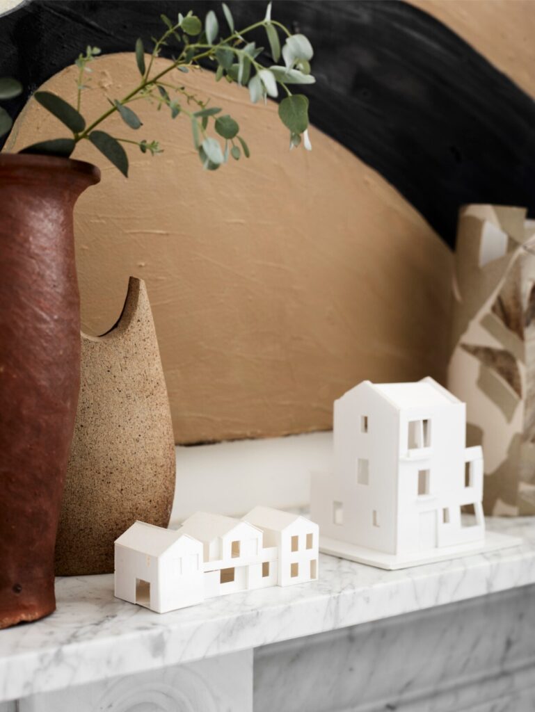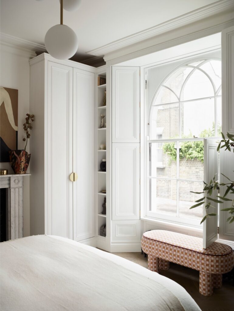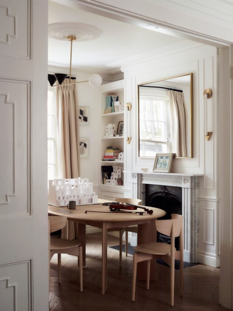 Ao longo do tempo, a casa tinha sido profundamente descaracterizada. Quase nada de original permanecia, à exceção de duas belas portas duplas entre as divisões do primeiro piso. Havia sancas dos anos 1980, pavimentos sintéticos que imitavam madeira, lareiras tapadas e alcatifas. Assim, a primeira tarefa não foi introduzir algo novo, mas antes repor aquilo que deveria sempre ter estado ali. “Investigámos casas georgianas na zona e reintroduzimos cuidadosamente sancas, rosetas de teto, lareiras e ferragens adequadas à época”. Uma vez restabelecida essa estrutura histórica, a questão passou a ser como viver nela enquanto família de quatro.