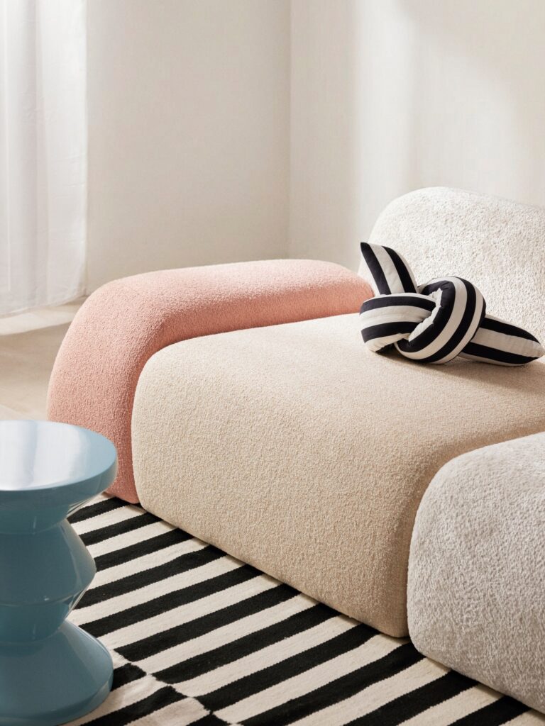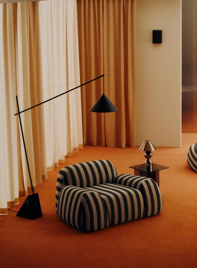 “As riscas trazem uma nova camada de inspiração ao Wolke. Este padrão gráfico realça as suas formas suaves, acentuando as curvas como se fossem linhas de contorno num mapa. É um jogo de contrastes onde a geometria encontra a suavidade, transformando o sofá numa peça de design marcante, com uma presença simultaneamente forte e intemporal”, sublinha Alexandra Tobler, VP & Creative Director da Westwing Collection.