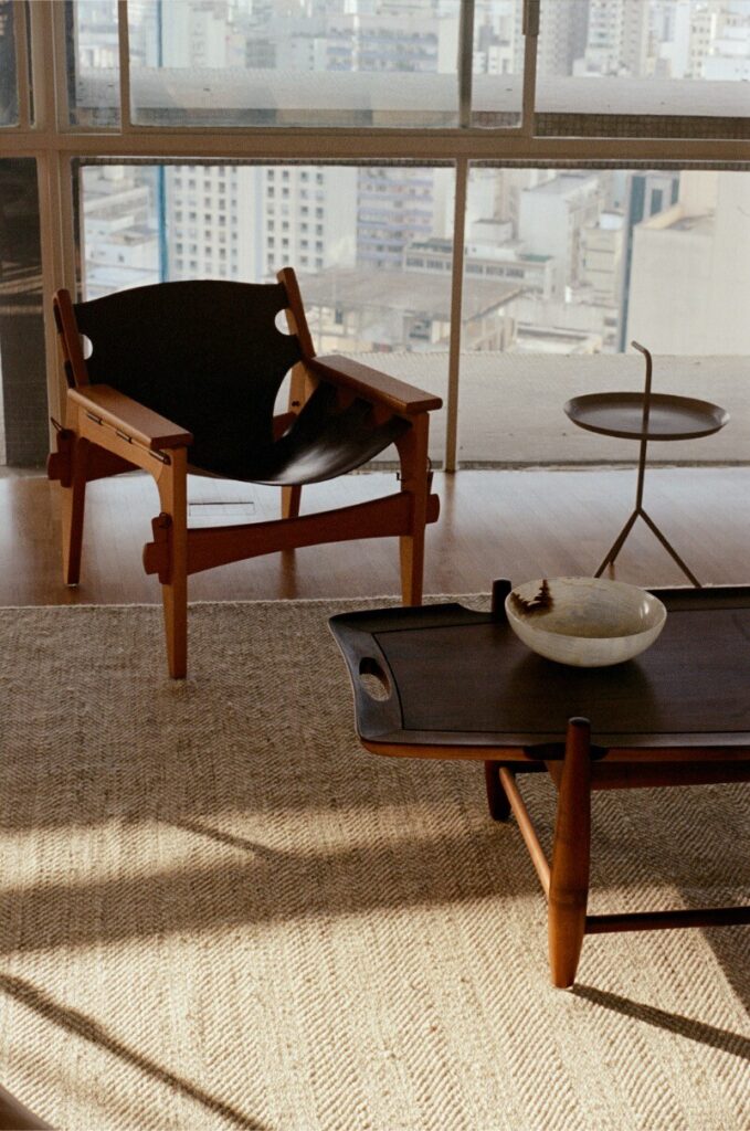 Na decoração, peças de design brasileiro dialogam com a arquitetura — como as poltronas de Sergio Rodrigues — enquanto objetos afetivos e memórias de viagem encontram lugar em prateleiras desenhadas por medida. A iluminação, predominantemente indireta, reforça o caráter íntimo dos espaços, com fitas de LED, arandelas e pontos de apoio que valorizam volumes e texturas.