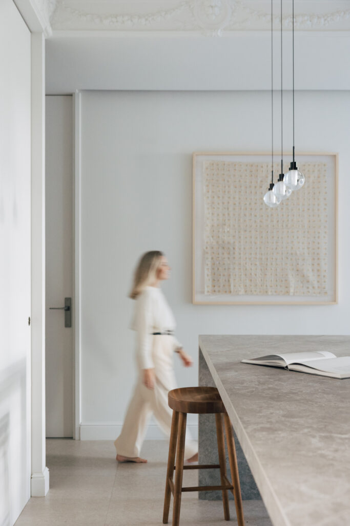 A intervenção partiu de premissas claras: recuperar a máxima altura dos tetos, preservar e reinterpretar as molduras originais, privilegiar espaços abertos e reforçar a ligação visual à alameda. Mais do que uma reforma, tratou-se de criar um cenário doméstico onde a cultura mediterrânica pudesse ser vivida em pleno, mantendo a escala e a liberdade espacial da experiência americana.