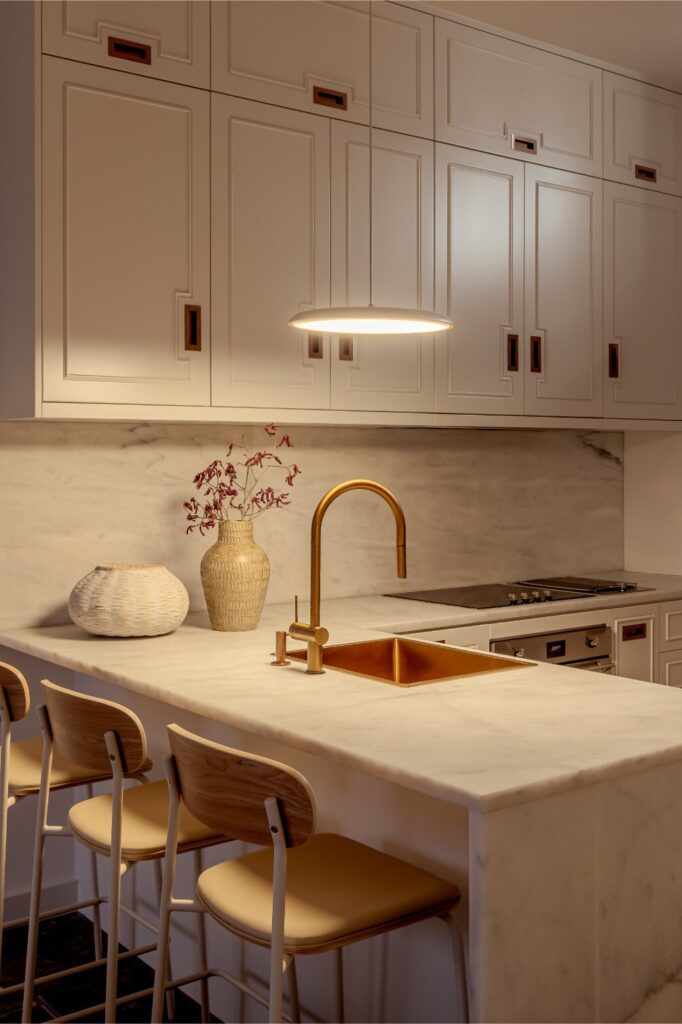 Sem constrangimentos técnicos relevantes e com total confiança criativa por parte dos clientes, o resultado traduz fielmente a filosofia da designer: criar interiores serenos, inspiradores e profundamente humanos, onde arte, matéria e emoção coexistem — e onde os habitantes se sentem, verdadeiramente, em casa.