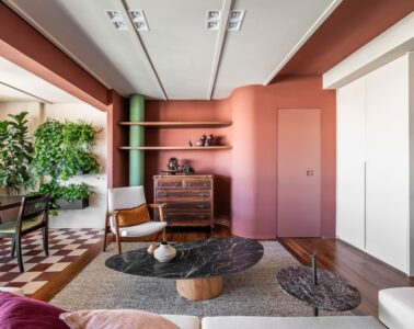 Granito vermelho assume protagonismo neste apartamento em São Paulo
