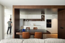 Cores marcantes e tons quentes estão na base deste apartamento que tem também nas estruturas em betão aparente grande parte da sua identidade.