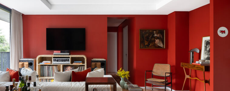Vermelho e colecionismo cruzam caminhos neste apartamento em São Paulo