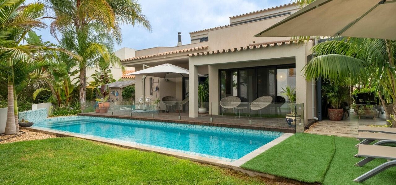 Extraordinária moradia isolada T3+1, totalmente renovada, a cerca de 20 minutos a pé da Marina e das praias de Vilamoura. Composta por 3 suítes, 1 quarto/escritório, 4 casas de banho, hall, sala de estar com lareira e recuperador de calor, sala de jantar, cozinha equipada, lavandaria e amplos terraços. No exterior, piscina, jardim tropical e pérgula criam o ambiente ideal para momentos ao ar livre. Dispõe de estacionamento para 2 carros e lote de 530 m². Equipada com vidros duplos, ar condicionado, painéis solares com caldeira de 400 L, capoto, alarme e rega automática — garantindo conforto, eficiência e segurança todo o ano. Próxima de campos de golfe, hotel Hilton SPA, restaurantes, bares e supermercados, esta moradia oferece o equilíbrio perfeito entre tranquilidade, comodidade e estilo de vida algarvio. REF. V13004