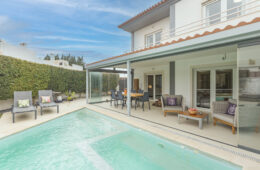 Moradia contemporânea com jardim, piscina e sala de cinema em Murches, Cascais. Inserida numa zona tranquila e residencial, destaca-se pela luminosidade, áreas ...